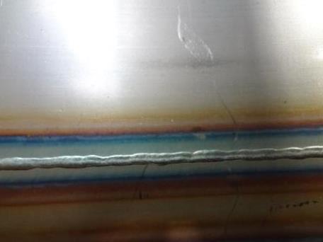 1)3t 溶接表 φ600 厚さ3mm 裏波 ![]() 2)3t 溶接裏 ![]() |