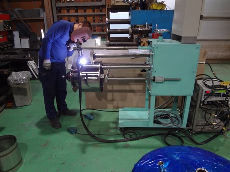 東亜ステンレスの自社製品:TIG溶接機専用溶接アシスト機 <円径裏波溶接機> タンク底、またホッパー胴丹に快適な裏波溶接が可能となりました。 また、小ロットから大ロットまで対応可能! アンペア数と回転数をデジタル化できたので、一度設定すれば同じ条件で使用可能です。 手放しのため9分30秒間、自動溶接でできています。 興味のある方は、弊社までご連絡ください。 径と長さを御社に合った設計をいたします。 ① 裏波範囲 t1.0~t2.5 ② 径 φ300~φ800 ③ 長さ 100H~800H 尚、混合ガス使用の場合は t3.0まで溶接可能です。 ※5:5の混合ガスで4tも溶接可能となりました。 |