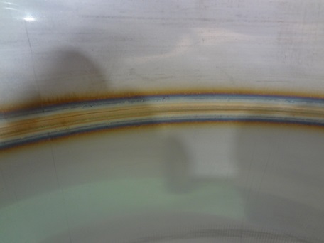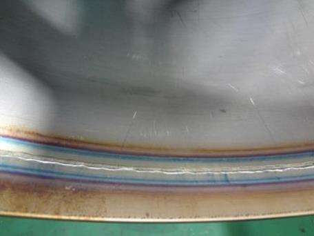 1)3t 溶接表 φ600 厚さ3mm 裏波 ![]() 2)3t 溶接裏 ![]() |