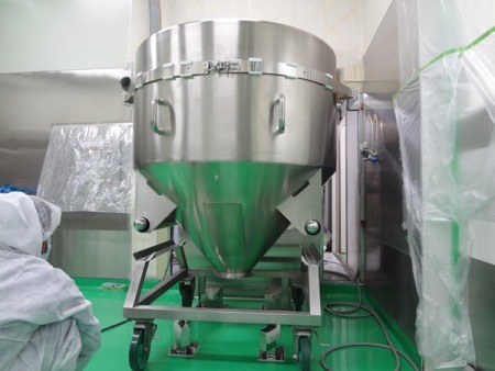 コンテナへの紛体投入及びコンテナ内洗浄用に昇降・反転できます